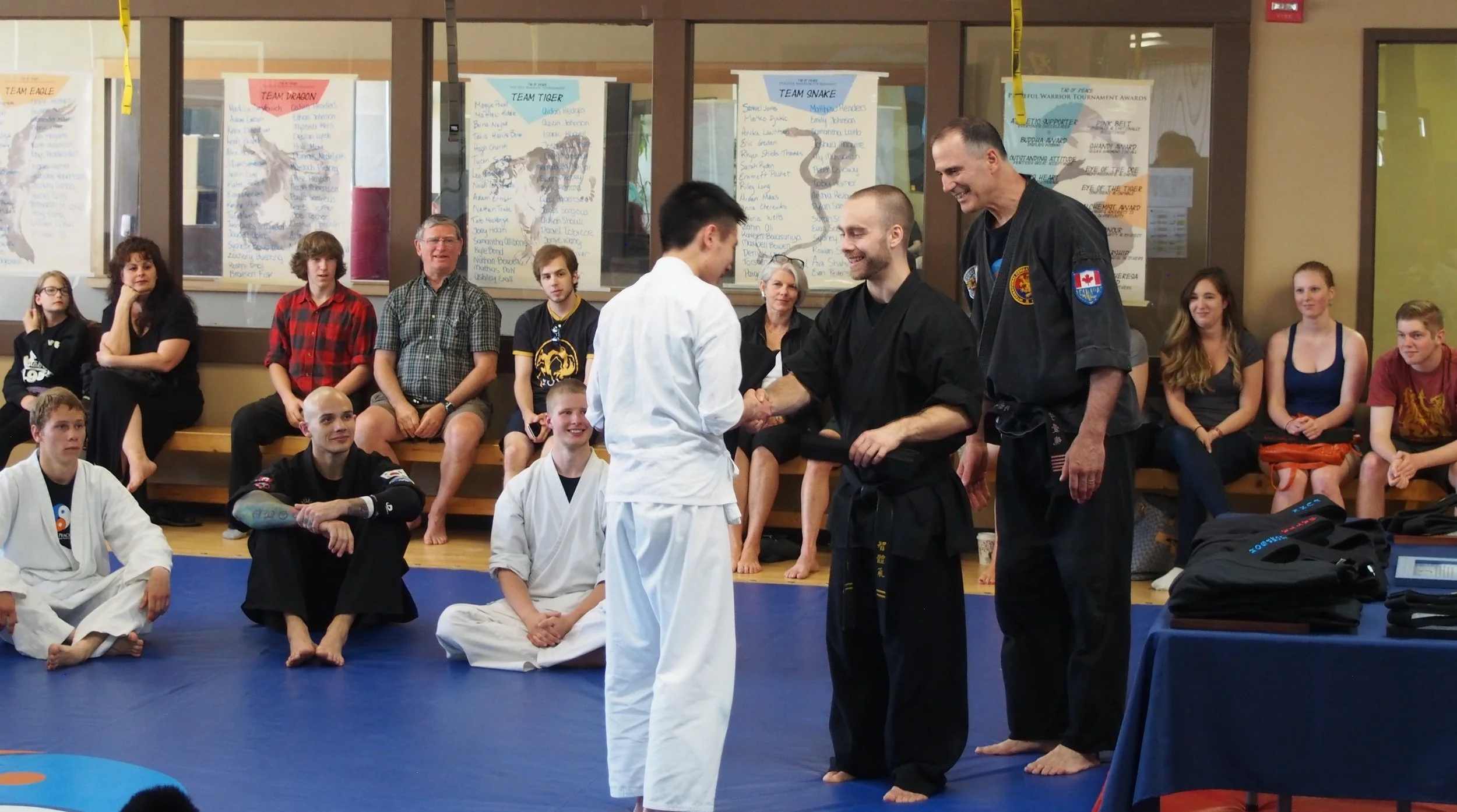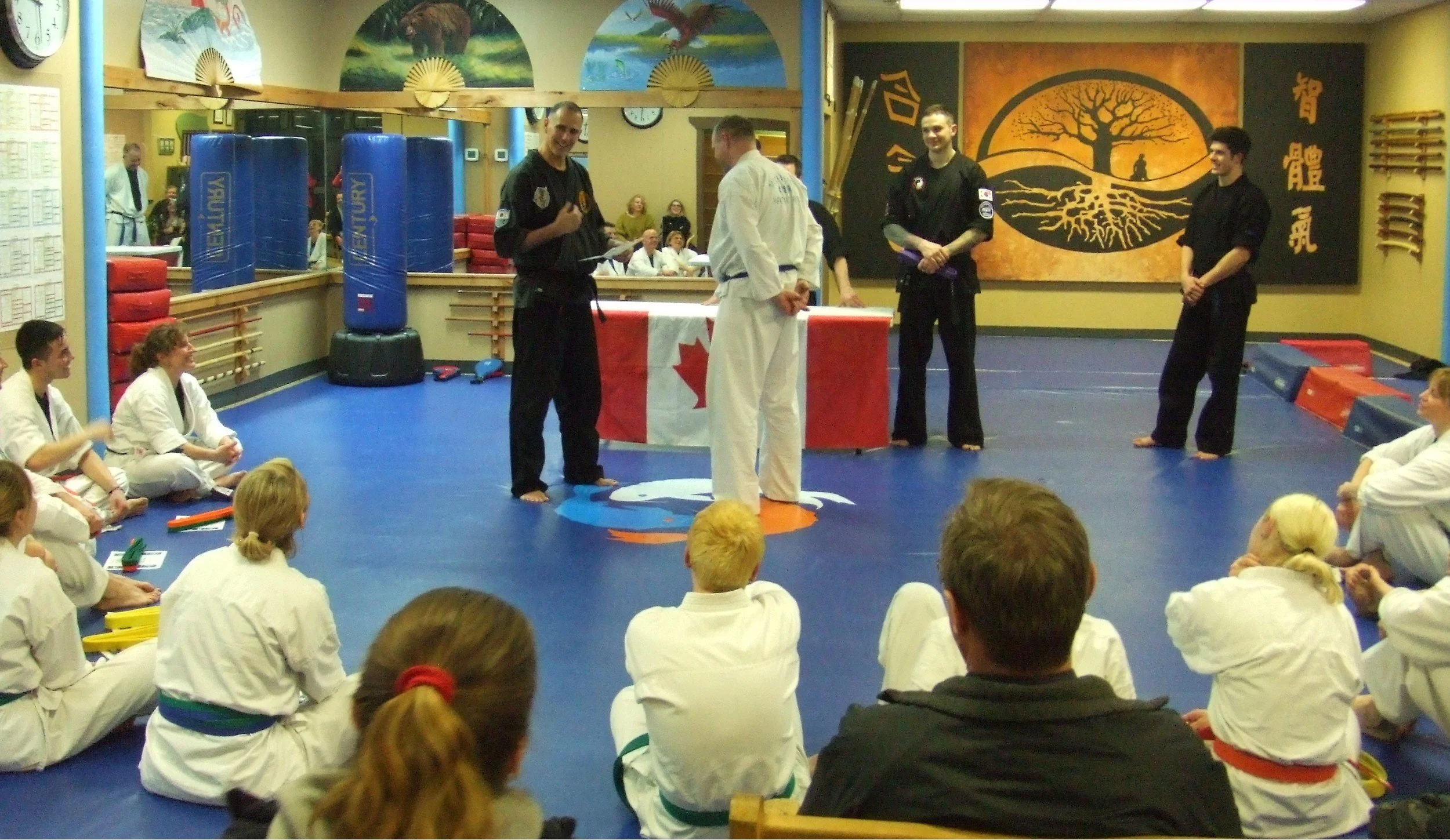 There is a written reflective component that is to be completed and handed in one month prior to the belt test date. Participating students will create their own personal pattern, (kata), that needs to be authorized by the Head Instructor. There are options regarding selections of uniform and belt embroidery, colour and sizes. The student schedules a meeting(s) with the head instructor to individualize the preparation, learning and review process leading up to their test.